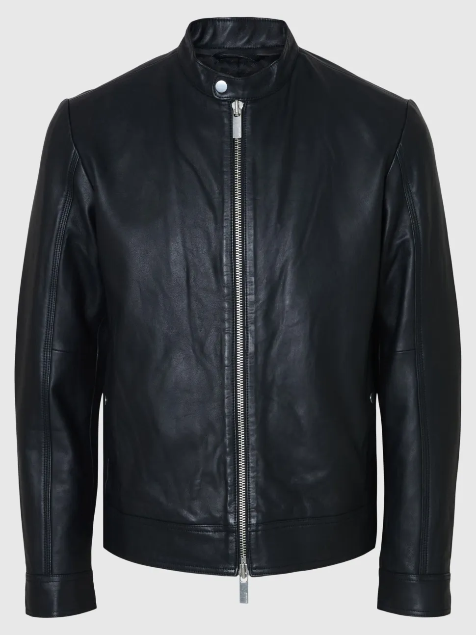 Pehmeää nahkaa, vahva valinta. Jokainen vaatekaappi tarvitsee nahkatakin, joka ylittää trendit vuodesta toiseen. Taitavasti leikattu joustavasta vuohennahasta, ja siinä on urheiluvaikutteinen kaksisuuntainen vetoketju, joka tuo modernia ilmettä tähän ajattomaan klassikkoon. Täysin vuorattu. Tämä takki on valmistettu laatua ajatellen ja näyttää uskomattomalta tulevina vuodenaikoina. Muodosta tyyliä pukemalla villapusero ja kapeat housut päälle ja viimeistele ilme nahkaisilla housuilla.