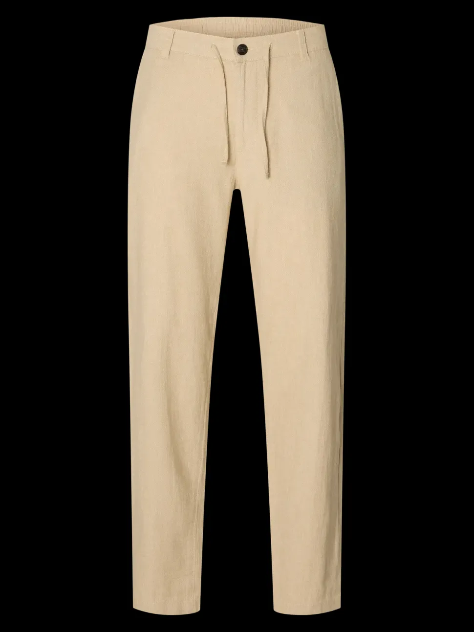 Mikä huutaa ”kevättä” enemmän kuin pellava? Nämä puuvilla-pellavasekoitehousut ovat täydellinen yhdistelmä mukavuutta ja kestävyyttä. Niissä on keskivyötärökorotus kiristysnyörillä, joka ei ole vain säädettävissä, vaan antaa myös rentoa tunnelmaa. Suosittelemme muotoilemaan ne t-paidalla, napittamattomalla päällyspaidalla ja nahkaisilla kalastajasandaaleilla. – Keskivyötäröllä laskettu nousu – Vetoketjullinen sepalus nappeilla – Säädettävä kiristysnauhakiinnitys – Vyölenkit – Viistot sivutaskut – Hitsatut takataskut napeilla – Kapeneva jalka – Rento istuvuus