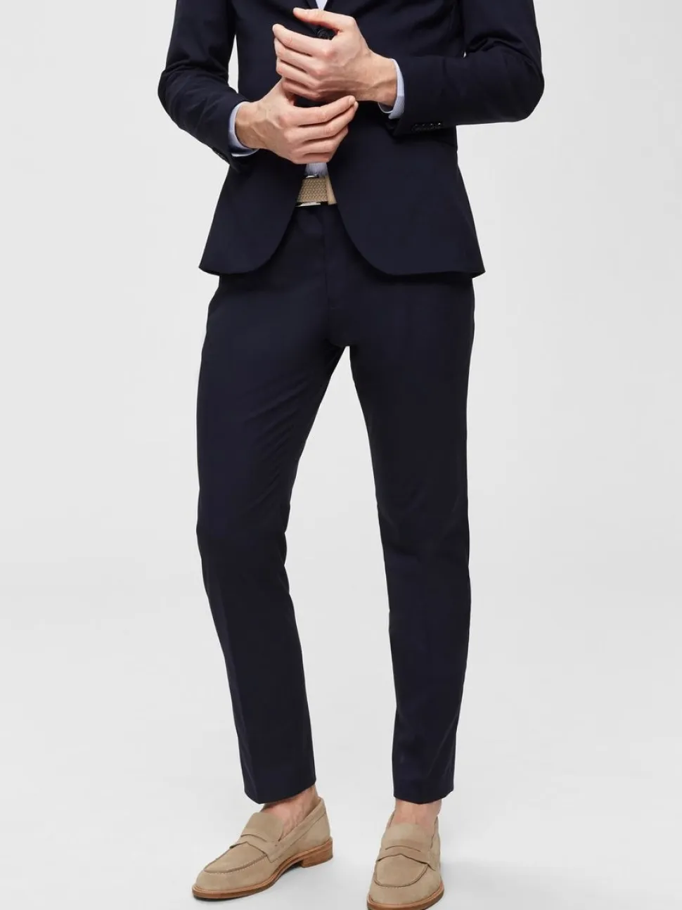 Selected miesten puvut housut, mallia One Logan. Osittain kierrätysmateriaalia. Vinotaskut, napilliset takataskut. Monikäyttöiset housut töihin tai juhlaan.
