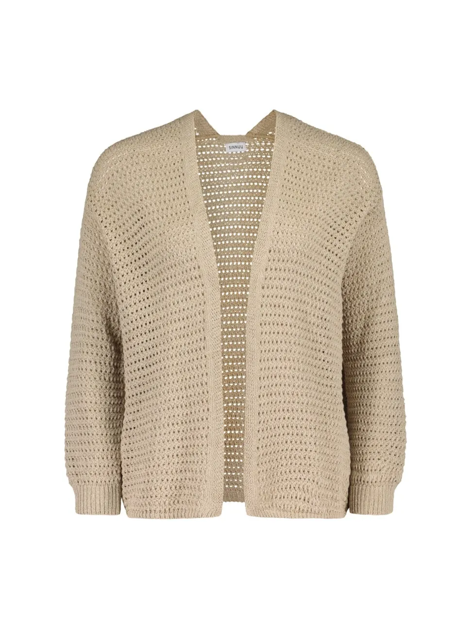 Kotimaisen Sinnuun LOREN-neuletakki on helppo ja monikäyttöinen vaate ympärivuotiseen käyttöön. Neuletakissa on edestä avoin, napiton malli ja pitkät hihat, joissa hihansuussa joustavaa neulosta. Neuletakissa on pitsimäinen, reikäinen kuviointi, joka tekee siitä hieman läpinäkyvän sekä erityisen hengittävän. Tämän lisäksi neuletakin materiaali on korkealaatuista puuvillaa, joka on miellyttävä materiaali jokaisena vuodenaikana kesästä talveen.