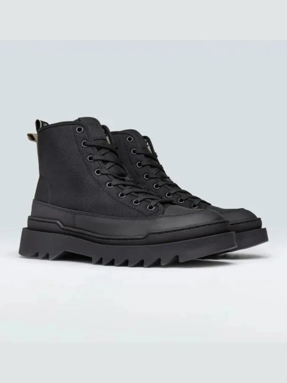Kamiki High on paksupohjainen hybridikenkä, joka yhdistää korkean lenkkarin ja saappaan tyylin. Se on valmistettu karkeasta kudotusta nailonista ja nahasta, polyesteri-pipingilla ja luomupuuvillavuorella. Kengässä on kevyt mutta kestävä TPR-pohja.