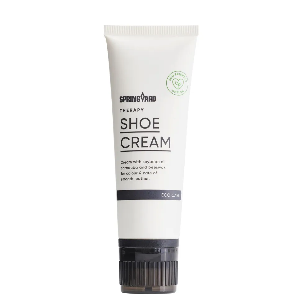 Springyard helppokäyttöinen vesipohjainen kenkävoide. Voide antaa kengille syvän väripigmentin sekä tarjoaa kevyen suojan lialta ja kosteudelta. Kenkävoide sisältää luonnollisia vahoja ja öljyjä. Tuote on täysin liuotteeton ja tuoksuu raikkaalta. 75 ml.
