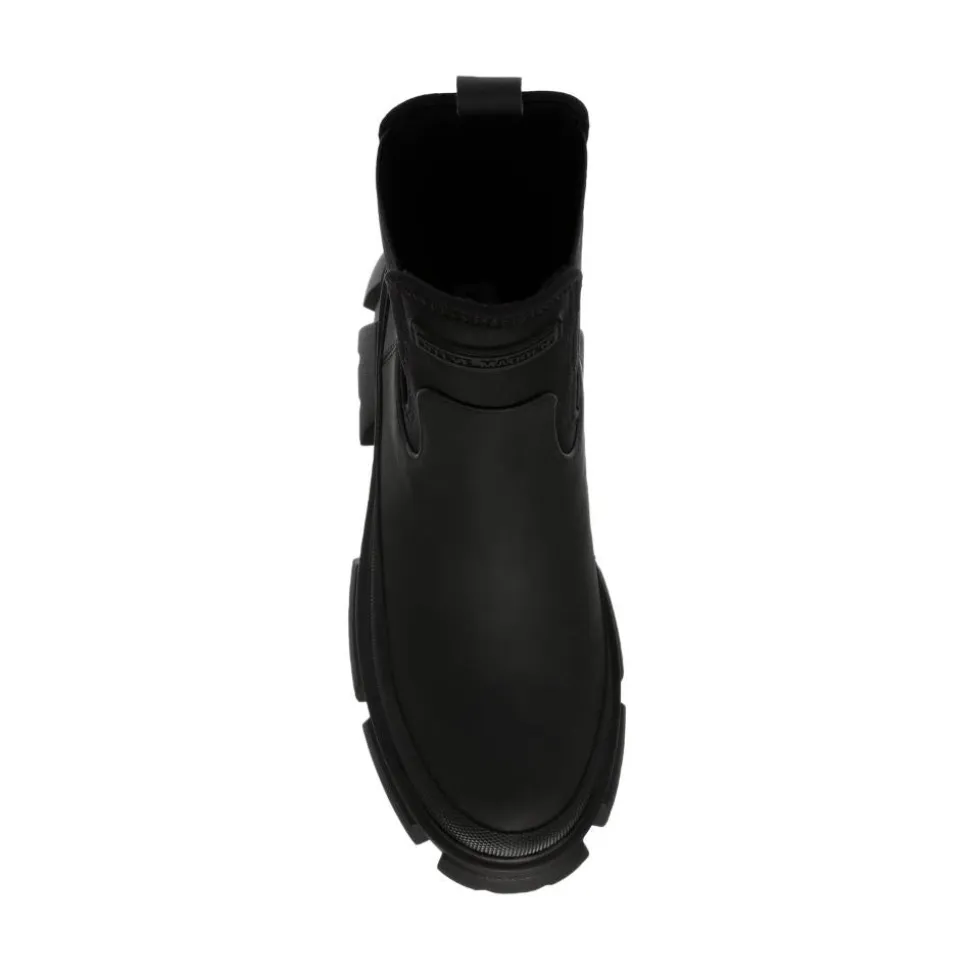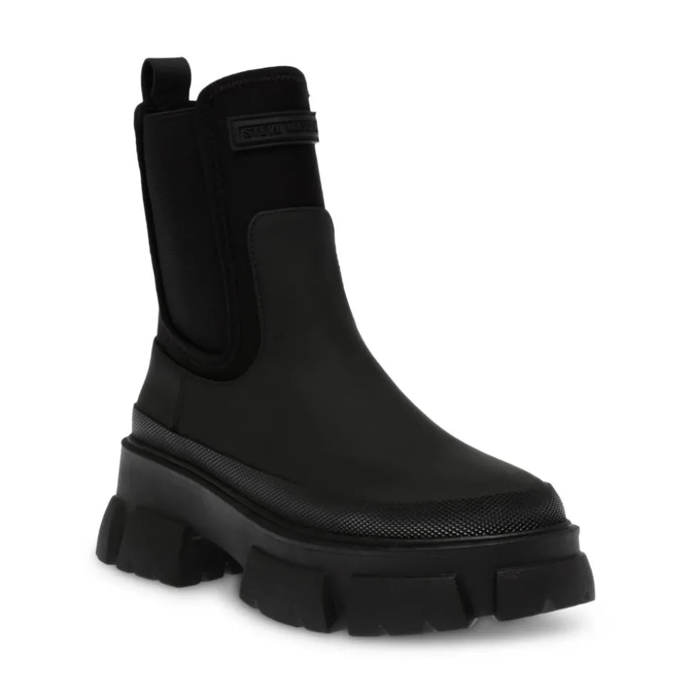 Steve Maddenin Triumphal-nilkkurit ovat erityisen trendikkäät ja monikäyttöiset! Kenkien puoleen sääreen yltävä varsi on tekstiiliä ja varressa mukavuutta lisäävät venykkeet. Muun kengän päällinen pehmeää, kierrätetyistä kuiduista valmistettua materiaalia. Kengissä paksu ja rouhea pohja. Kannan korkeus noin 6 cm