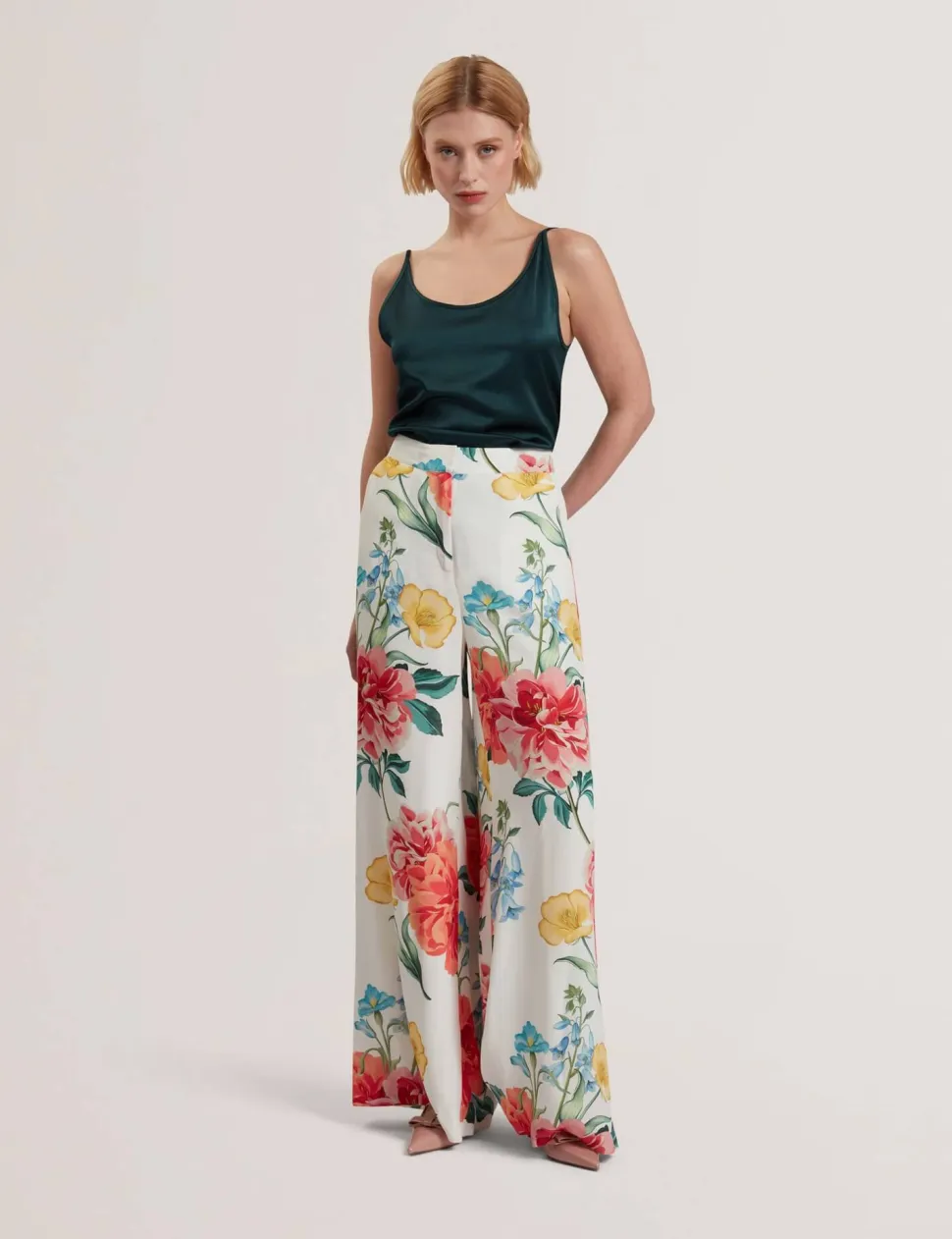 NYMPHAT-housut tuovat vaatekaappiisi raikkaan ja naisellisen ilmeen. Näissä korkeavyötäröisissä, leveälahkeisissa housuissa yhdistyvät moderni leikkaus ja näyttävä kukkaprintti, jotka tekevät niistä täydellisen valinnan niin arkeen kuin juhlaan.