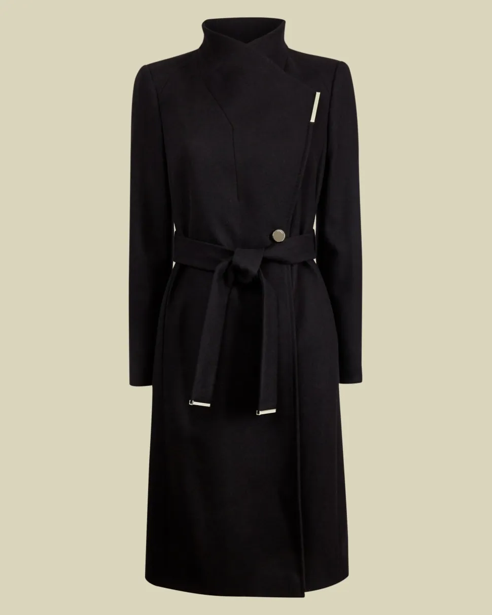 Ted Bakerin naisten villakangastakki, josta on muodostunut jo klassikko! Tyylikäs pitkä, kietaisu-tyylinen malli, jossa solmittava vyö vyötäröllä. .Villakankaassa polyamidia tuomassa vahvuutta ja ripaus kashmiria ylellisyyttä. Vuorikankaassa elastaania mukavuuden takaamiseksi. Kietaisutyylisessä takissa tyylikkäät metalliset yksityiskohdat sekä vyötäröllä solmittava vyö.Suljetaan napeilla sekä vyöllä. Midimittainen helma on tyylikäs sekä housujen että helmojen kanssa pidettäväksi! Huom! Punainen takki poikkeaa kuvasta, metallinen koriste toimitettavissa takeissa samanlainen suora kuin muissakin väreissä. Toimittajan koot: XXS= 0 XS=1 S=2 M=3 L=4 XL=5
