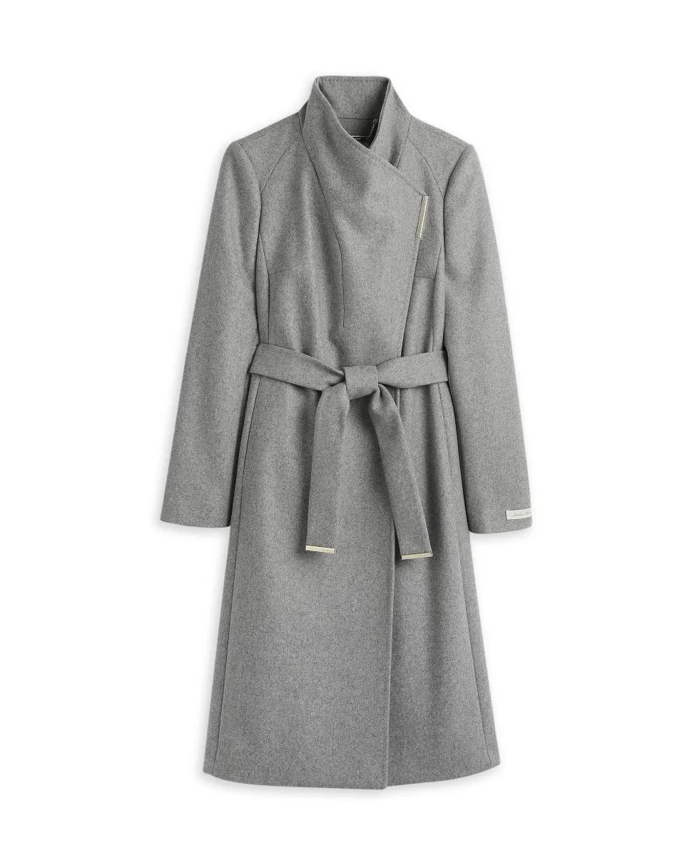 Ted Bakerin naisten villakangastakki, josta on muodostunut jo klassikko! Tyylikäs pitkä, kietaisu-tyylinen malli, jossa solmittava vyö vyötäröllä. .Villakankaassa polyamidia tuomassa vahvuutta ja ripaus kashmiria ylellisyyttä. Vuorikankaassa elastaania mukavuuden takaamiseksi. Kietaisutyylisessä takissa tyylikkäät metalliset yksityiskohdat sekä vyötäröllä solmittava vyö.Suljetaan napeilla sekä vyöllä. Midimittainen helma on tyylikäs sekä housujen että helmojen kanssa pidettäväksi! Huom! Punainen takki poikkeaa kuvasta, metallinen koriste toimitettavissa takeissa samanlainen suora kuin muissakin väreissä. Toimittajan koot: XXS= 0 XS=1 S=2 M=3 L=4 XL=5