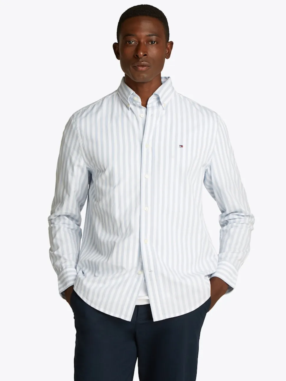 Tämä monipuolinen raidallinen paita on leikattu puhtaasta puuvillapopliinista ja siinä on innovatiivinen Tommy Hilfiger flex -tekniikka, joka tarjoaa helpon liikkumisen.