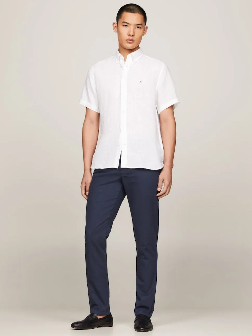 • Pigmenttivärjätty • Napitettava kaulus • Tommy Hilfiger -brändäys • Tommy Hilfiger -lippu brodeerattuna rinnassa