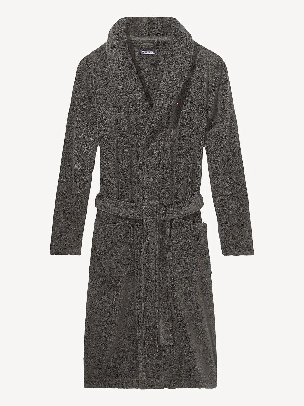 Miesten pehmeä kylpytakki puuvillafroteeta. Edessä isot taskut sekä solmittava vyö