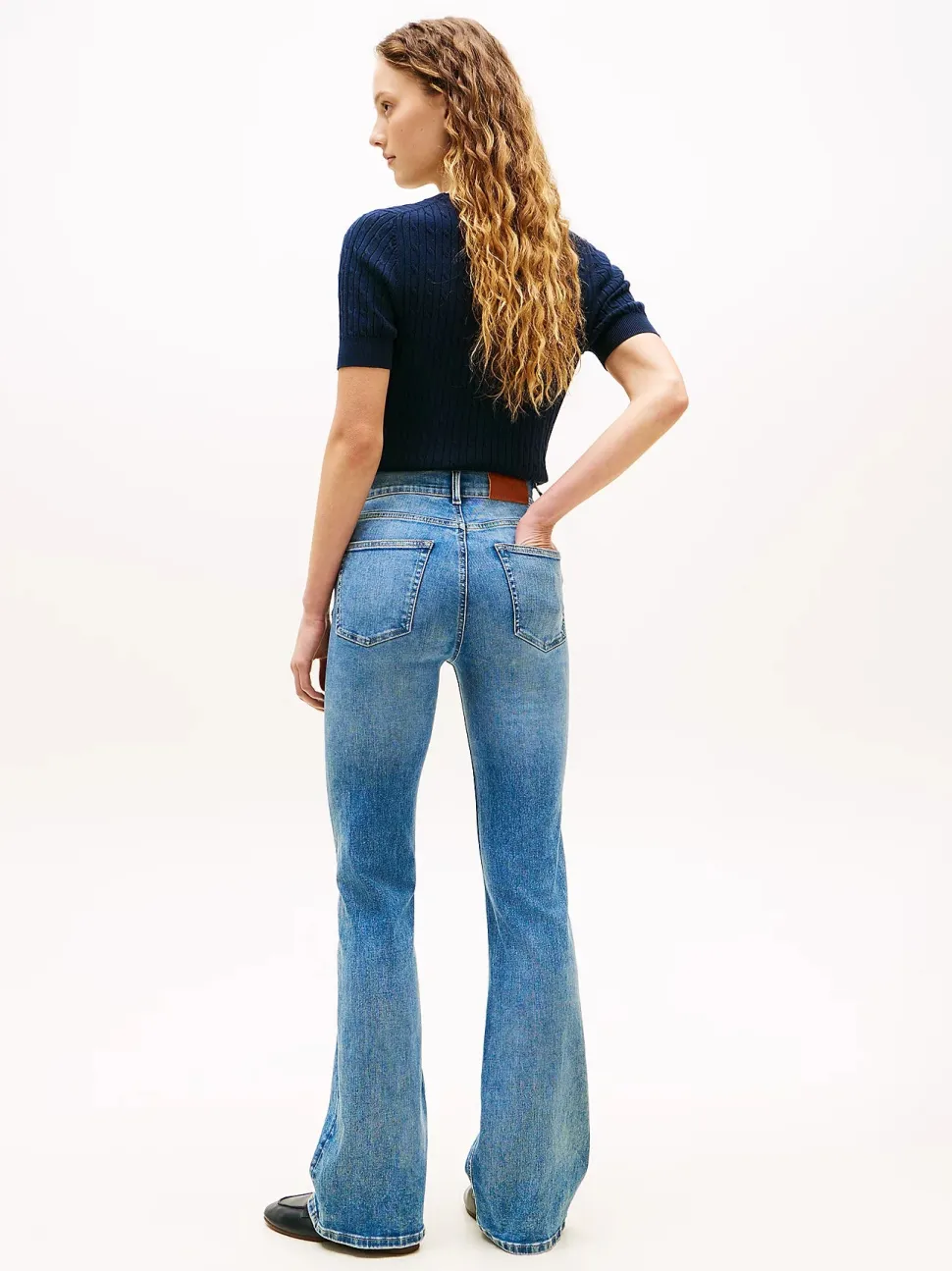 Päivitä arkityylisi tyylikkäillä, lievästi levenevillä farkuilla, jotka on valmistettu korkealaatuisesta, joustavasta puuvillasekoitedenimistä ja istuvat kauniisti.