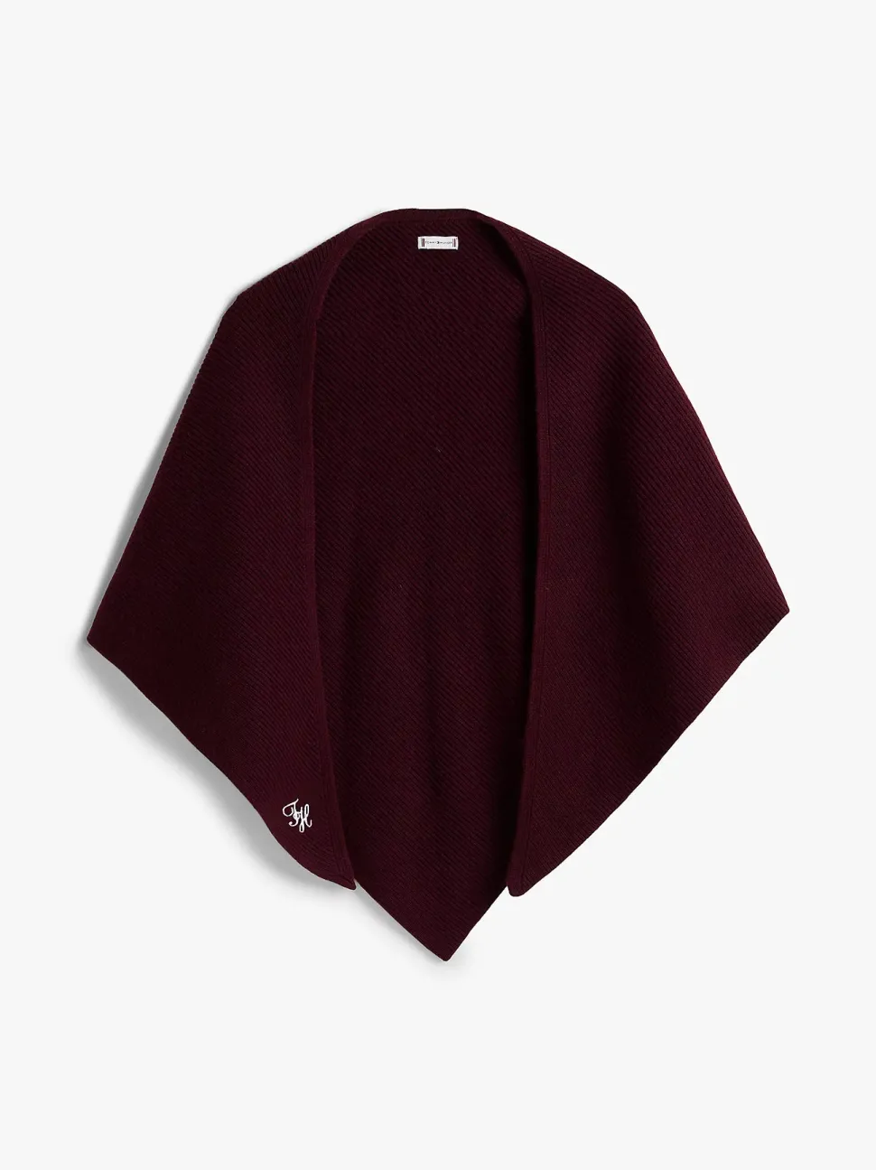 Tommy Hilfiger Triangle Scarf on ylellinen kolmionmuotoinen huivi, neulottu pehmeästä villa-kasmir-sekoitteesta (70 % villa, 30 % kasmir). Ribbineulottu pinta ja kulmaan brodeerattu ikoninen Tommy Hilfiger -logo viimeistelevät tyylikkään ilmeen. Huivi mittaa 150 x 110 cm, mikä mahdollistaa monipuolisen kietomisen kaulan tai olkapäiden ympärille. Ajaton design tekee siitä käytännöllisen ja elegantin lisän niin arki- kuin juhlapukeutumiseen.