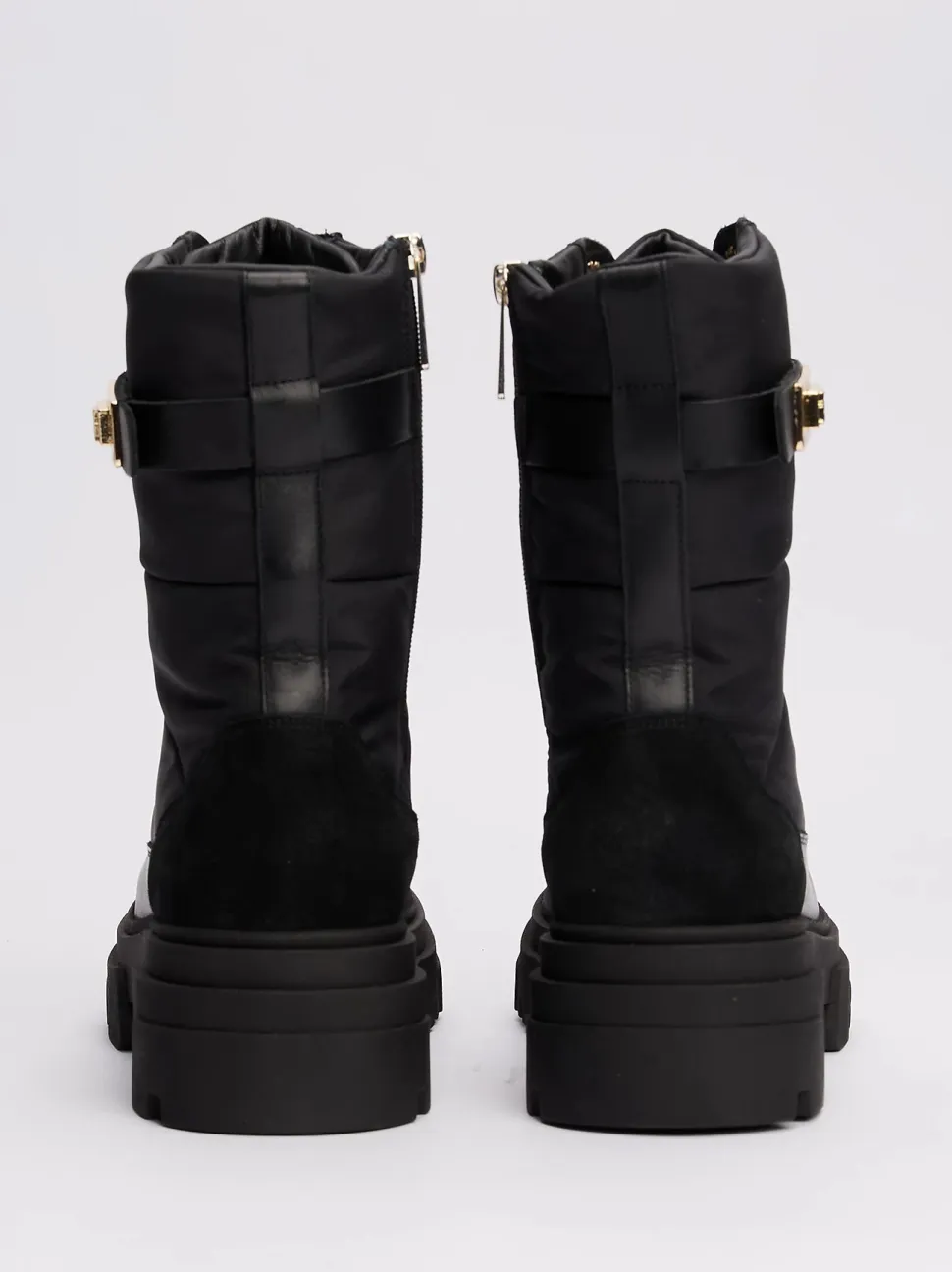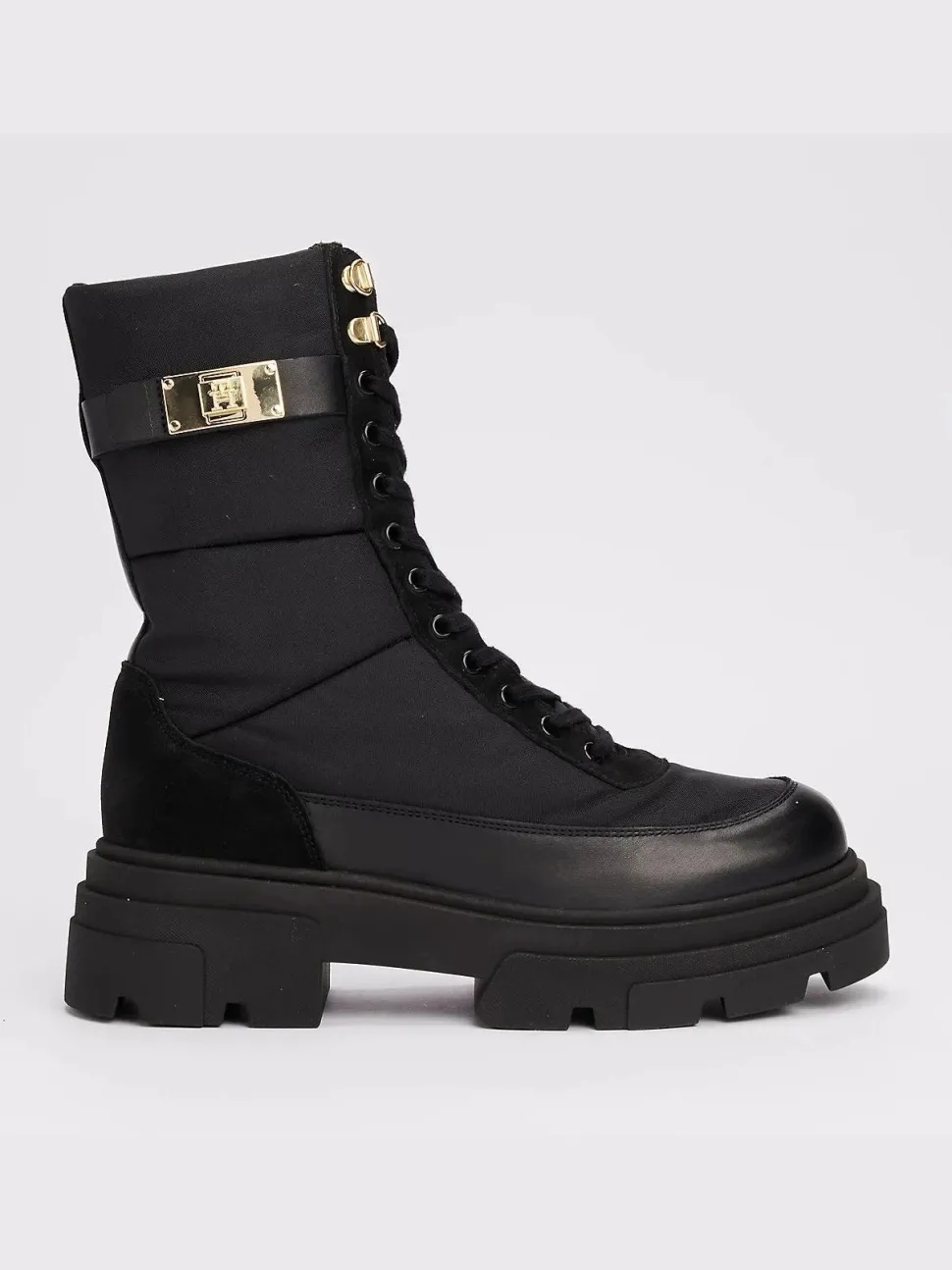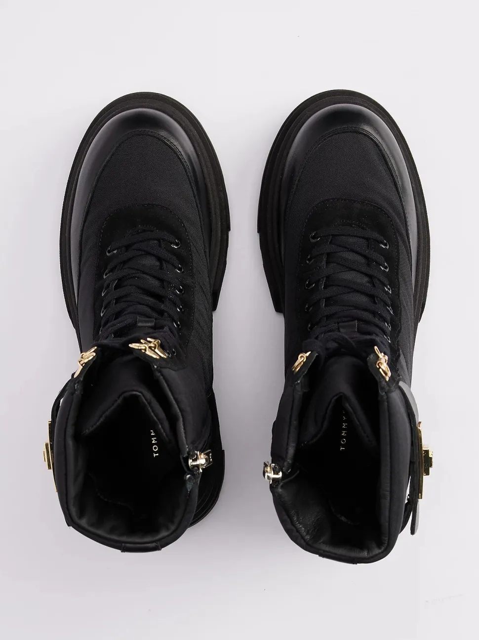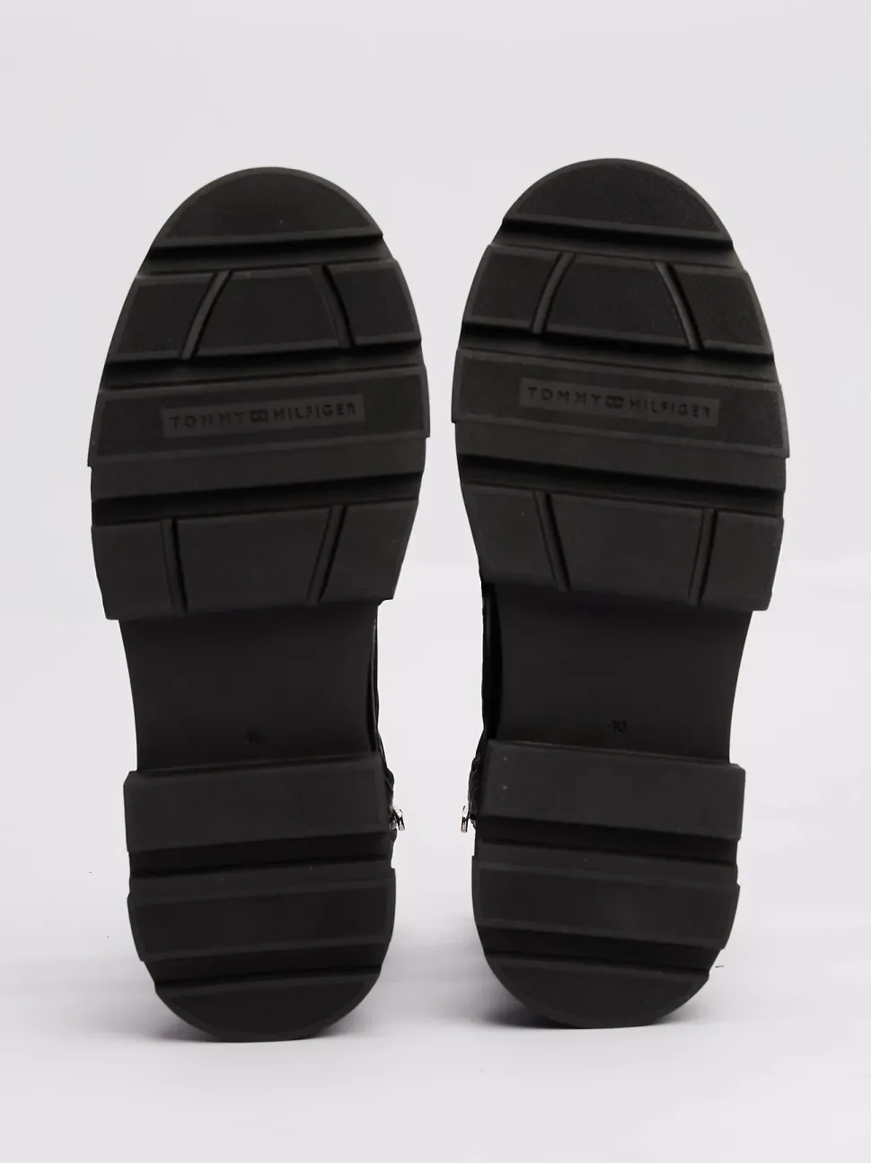 Tommy Hilfiger biker-saappaat paksulla pohjalla. Saappaissa on näyttävät metalliyksityiskohdat.