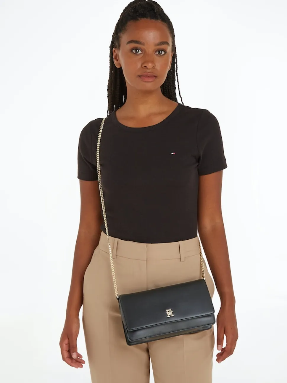 • Säädettävä ketjullinen crossover-hihna • Yksi sisäinen vetoketjullinen tasku • TH-monogrammi kyljessä • Tommy Hilfiger -brändäys Muoto ja istuvuus • Mitat: 24 x 6.5 x 15cm • Tilavuus: 2L.