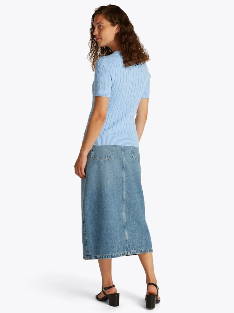 Tässä puuvillasta valmistetussa palmikkopuserossa on tyylikäs lyhythihainen siluetti.