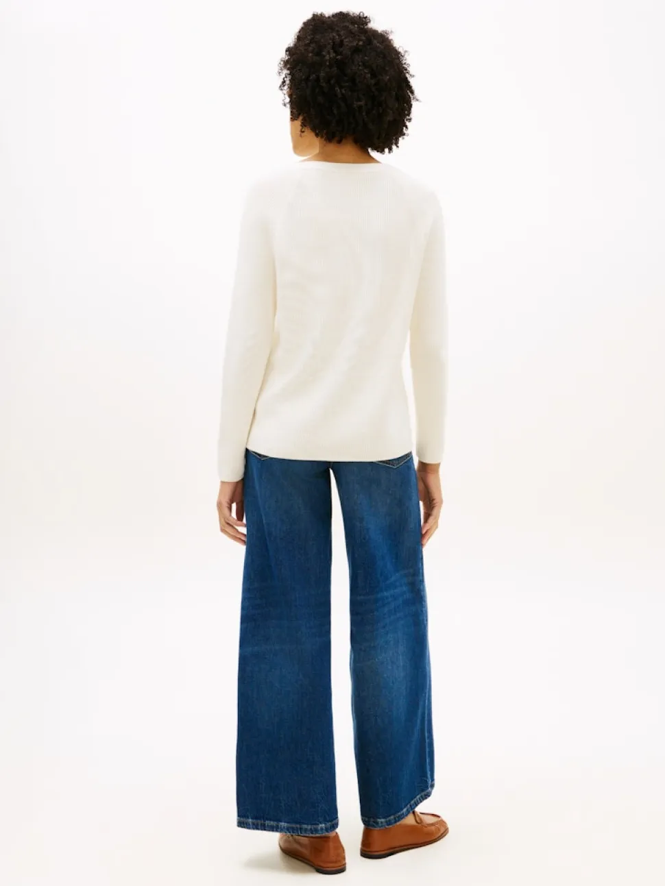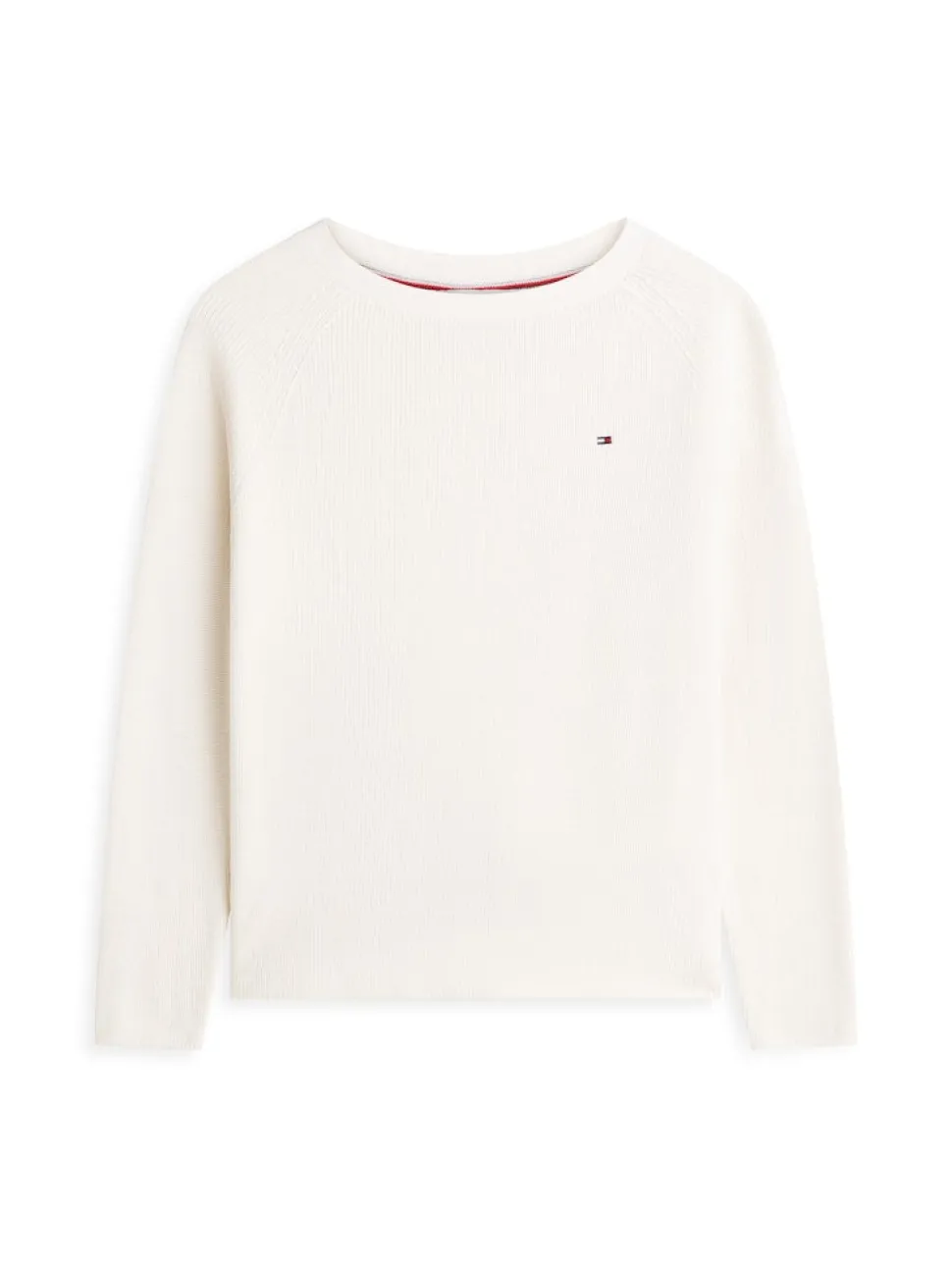 Tommy Hilfiger naisten neulepusero Cardi Fine GG LS Boat Neck Sweater, valkoinen