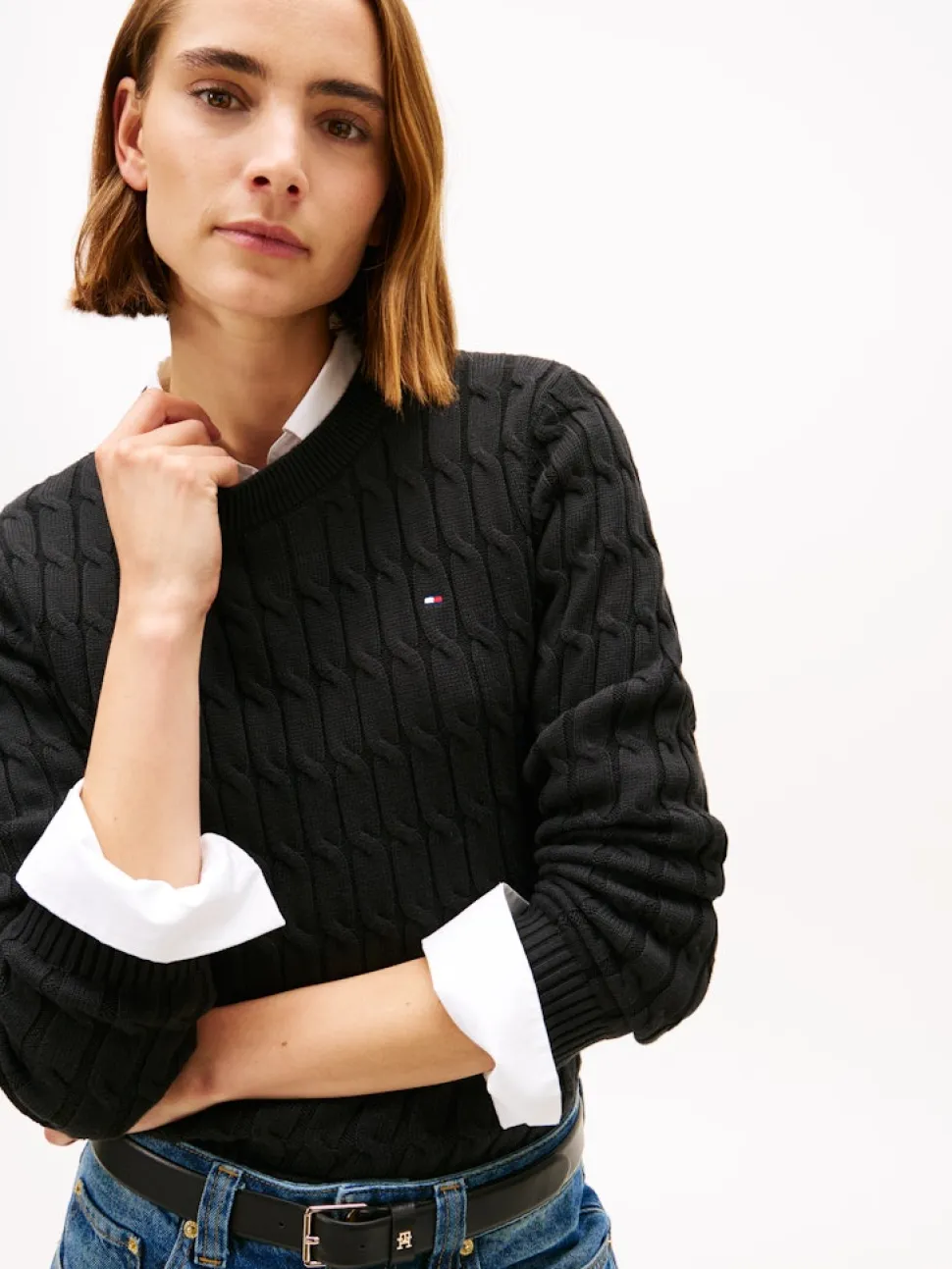Tommy Hilfiger naisten neulepusero CO CABLE MID GG C-NK LS SWT, musta