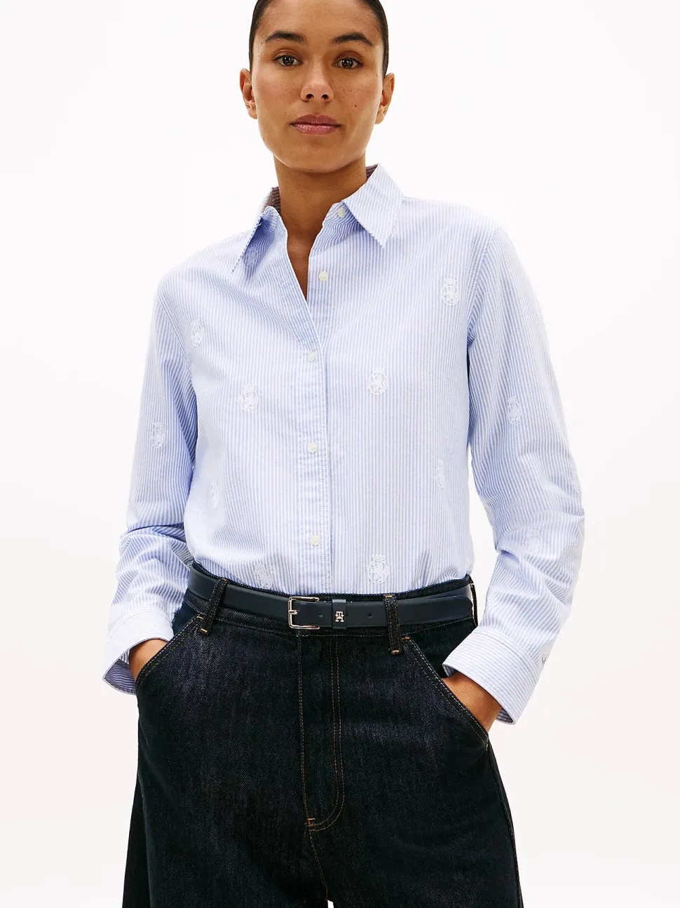 Tommy Hilfiger Relaxed Fit TH Crest Embroidery Oxford Shirt on klassinen naisten kauluspaita modernilla, rennolla istuvuudella. Oxford-kankainen materiaali antaa paidalle ryhdikkään mutta miellyttävän tuntuman, tehden siitä erinomaisen valinnan sekä arkeen että huoliteltuihin vapaa-ajan asuihin.