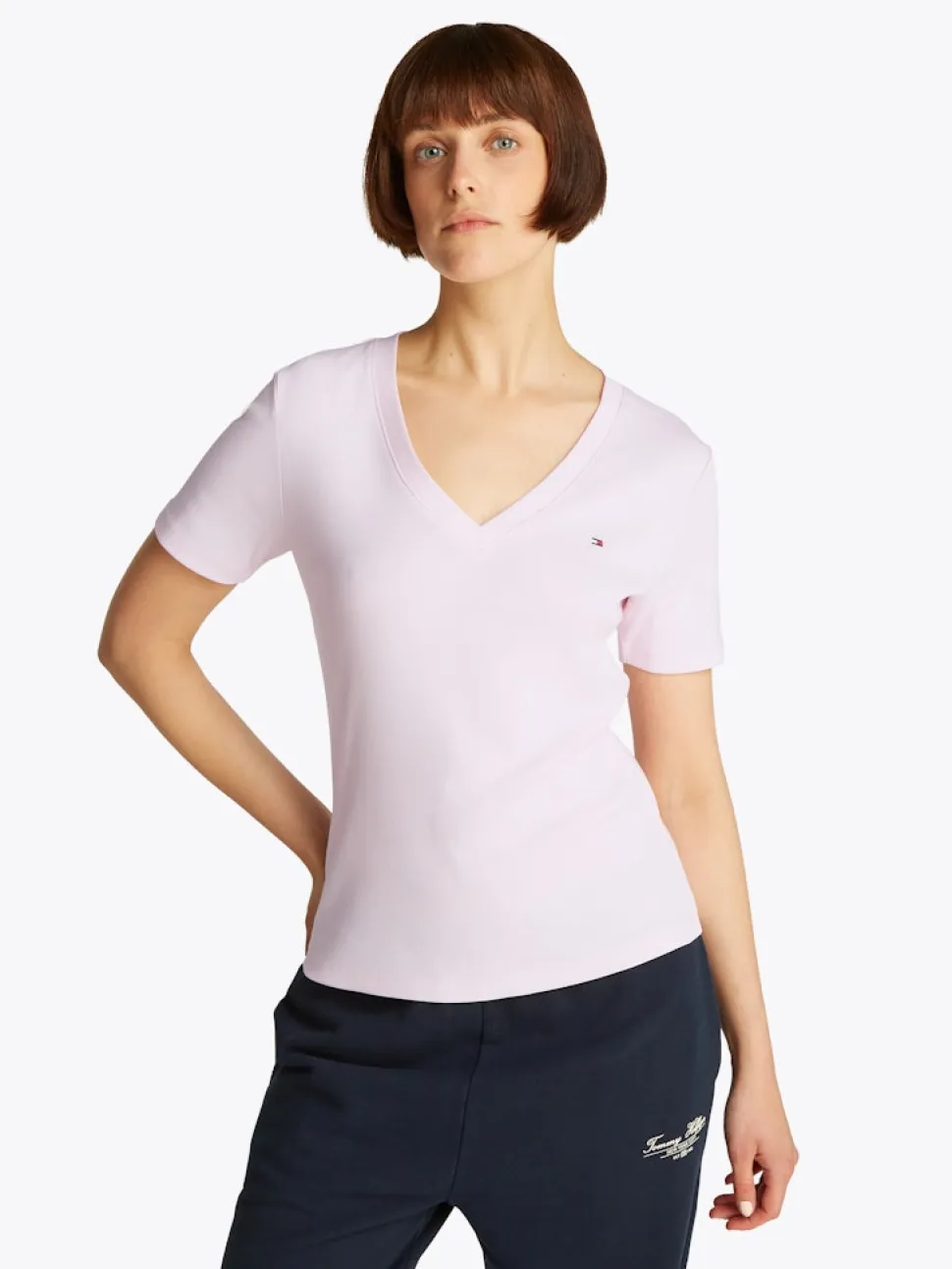 Tyylikäs ja klassinen Slim V‑Neck T‑shirt, joka on valmistettu 100 % puuvillasta, tarjoaa rennon mutta huolitellun ilmeen. Hienovarainen V-pääntie korostaa kaula-aukkoa, ja slim fit -leikkaus vartalonmyötäisesti pukeutuen luo tyylikkään silhuetin