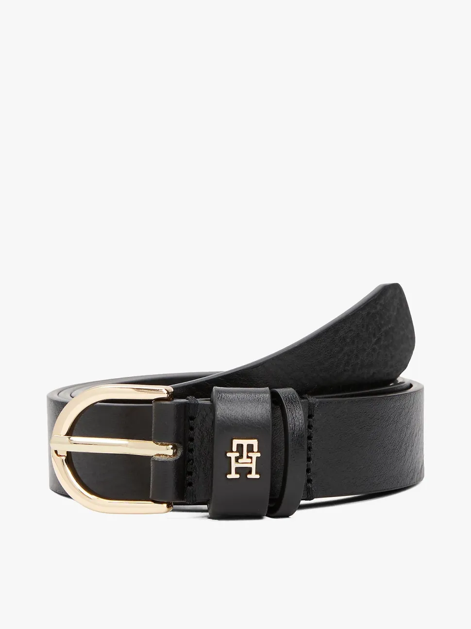 Tämä hillitty nahkavyö tuo asuihisi ylellisen tunnelman kiiltävän pyöreän soljen ja yhteensopivan TH-monogrammilaatan ansiosta.