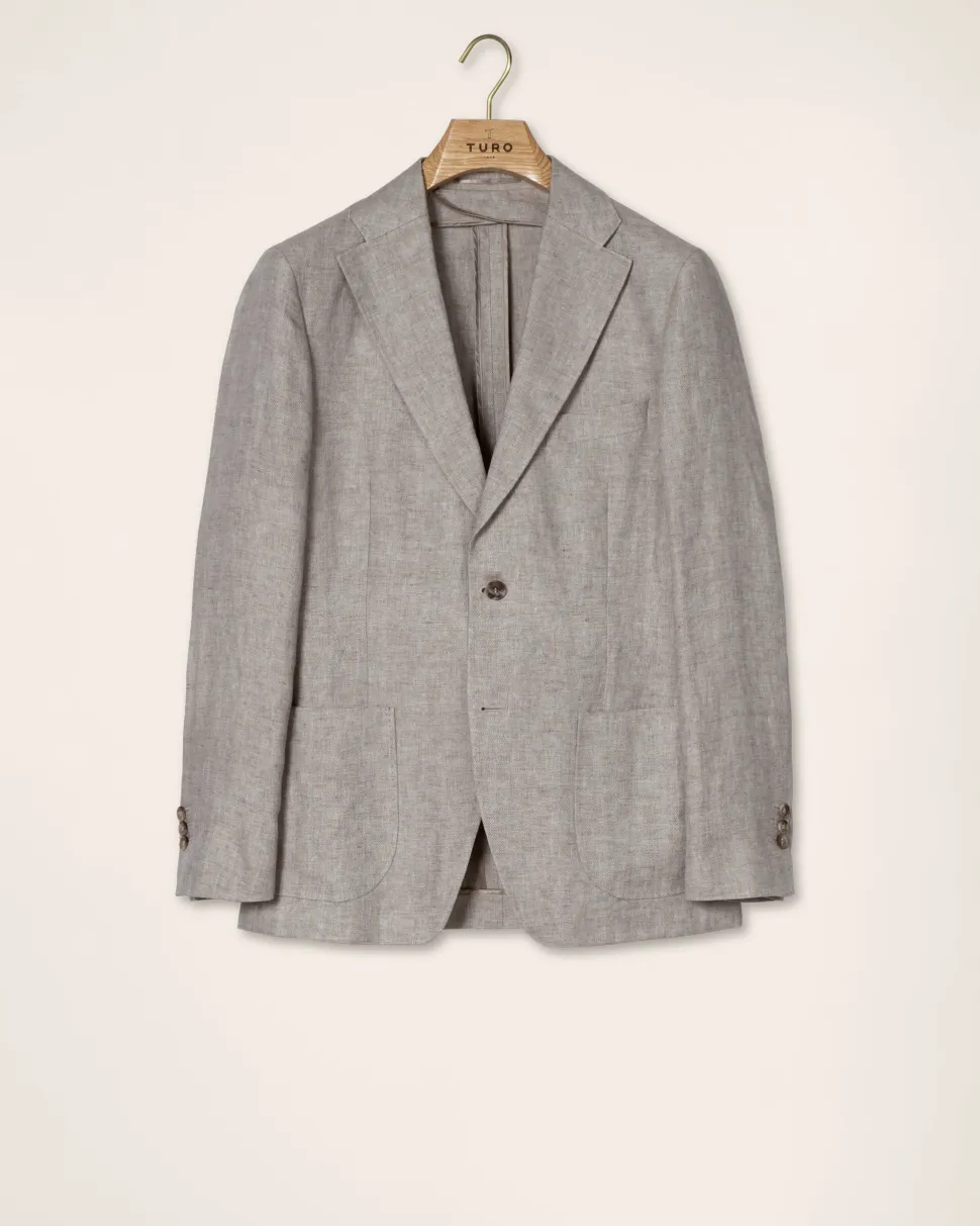 Vaalea kesäinen irtotakki rennolla mitoituksella. Angelicon loihtiman upean pellavakankaan ansiosta tässä takissa on mukava nauttia kesäpäivistä tai juhlia vaikka hieman lämpimissäkin olosuhteissa. Takkiin on saatavana myös housut.