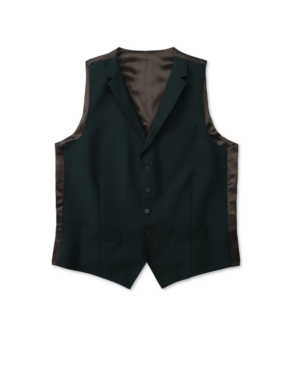 Tummanvihreä pukuliivi ylellisellä Vitale Barberis Canonicon kankaalla. Villa-Mohair on materiaalina erittäin hengittävä ja pitää ryhtinsä rypistymättä lämpimissäkin olosuhteissa. Värinsä puolesta liivi sointuu luontevasti kaikkiin kevään ja kesän juhlallisuuksiin.