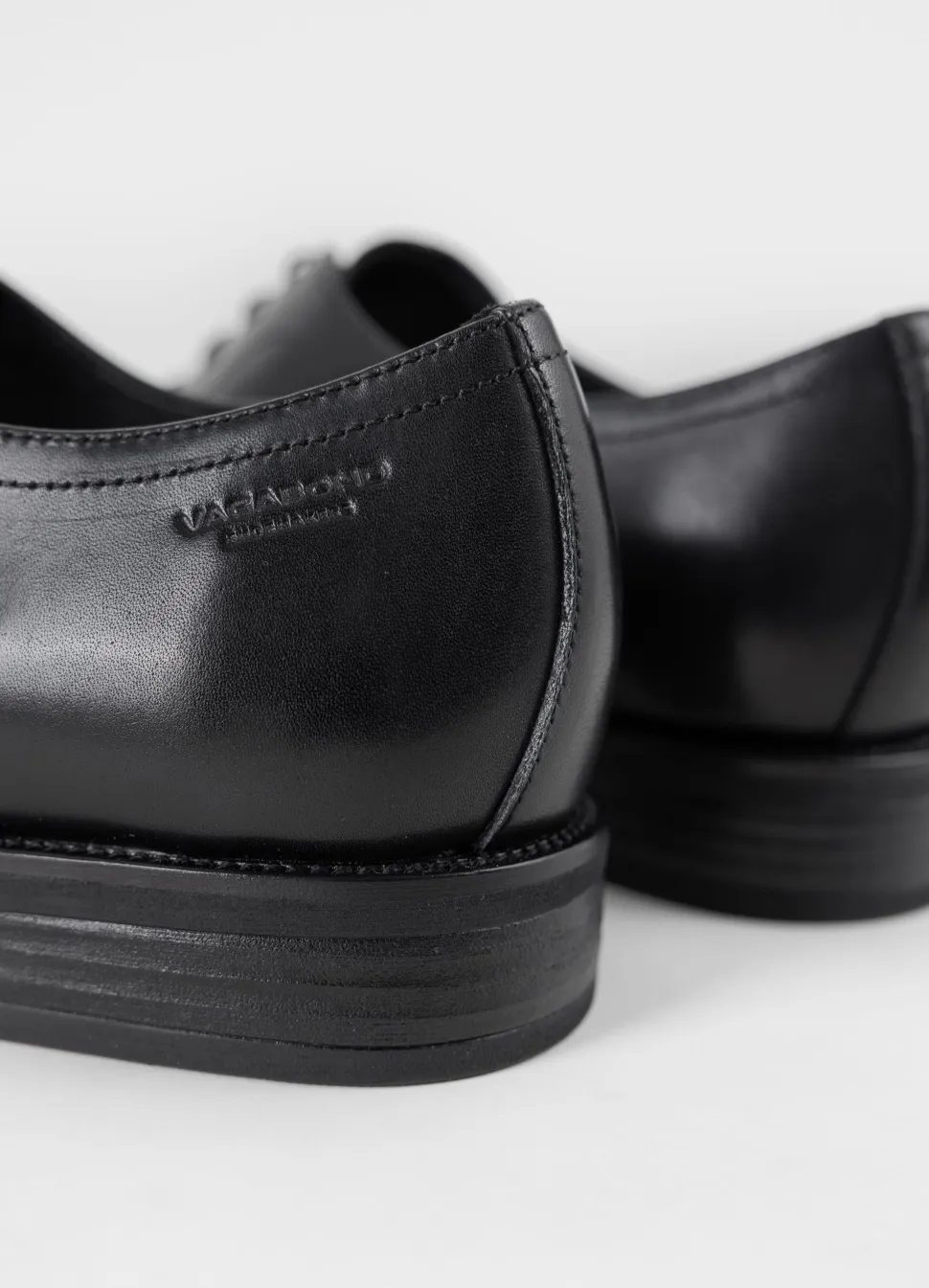 Mario on klassiset Derby-kengät hienostuneella ilmeellä. Hyvä juhla- ja pukukenkä. Mustasta nahasta valmistetuissa kengissä on klassinen derby-nauhoitus, pyöreät kärjet ja nahkaiset pohjalliset. Kengissä on myös nahkavuori. Matalat korot ovat 30 mm.