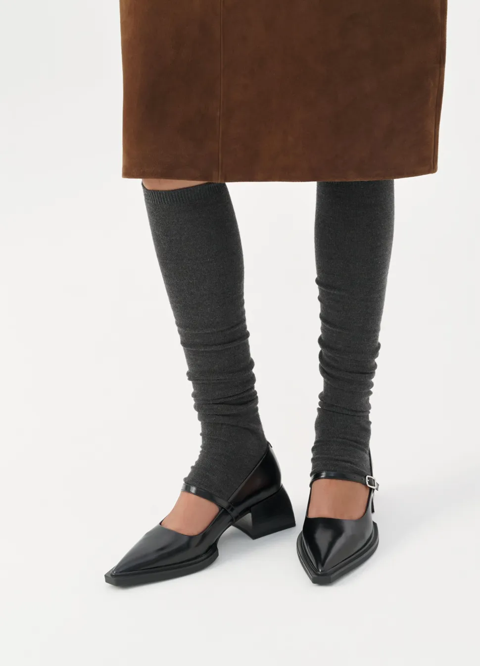 Vivian on modernit Mary Jane -avokkaat näyttävällä siluetilla. Tyyli on valmistettu mustasta kiillotetusta nahasta ja sen yksityiskohtiin kuuluvat terävät kärjet ja tyylikäs nilkkahihna hopeanvärisellä soljella. Veistokselliset korot ovat 55 mm.
