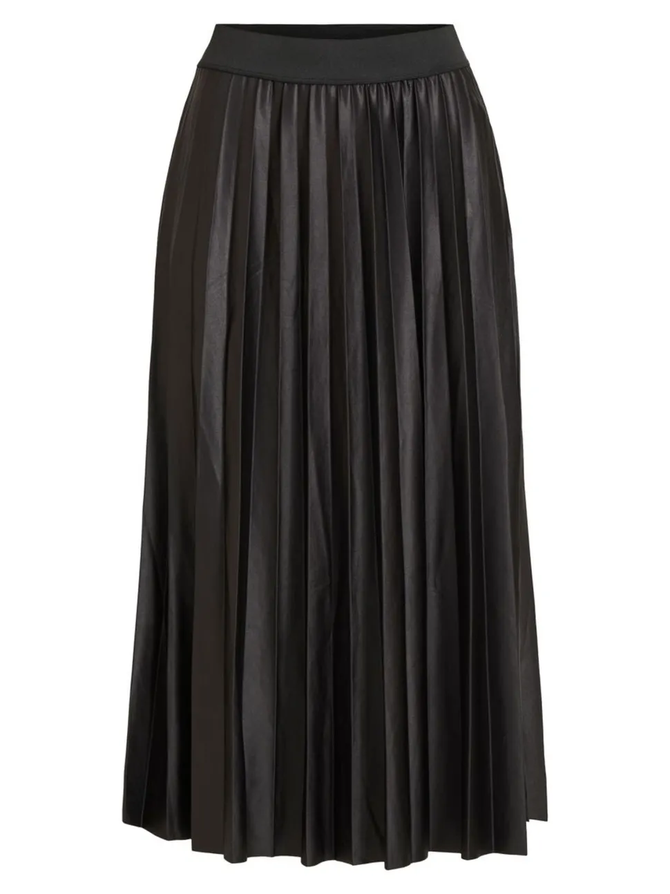 Vilan kaunis midimittainen hame, jossa on kiiltävä kangas. Joustava vyötärönauha ja tyylikäs pliseerattu kangas