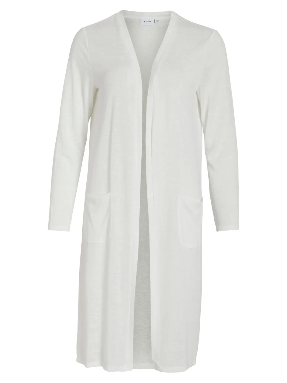 Hieman läpikuultava avoneuletakki pitkillä hihoilla ja avonaisilla taskuilla