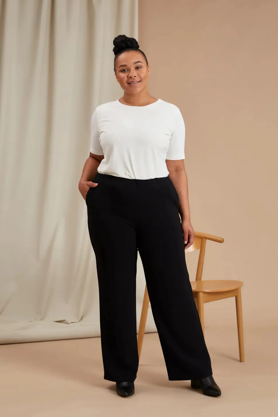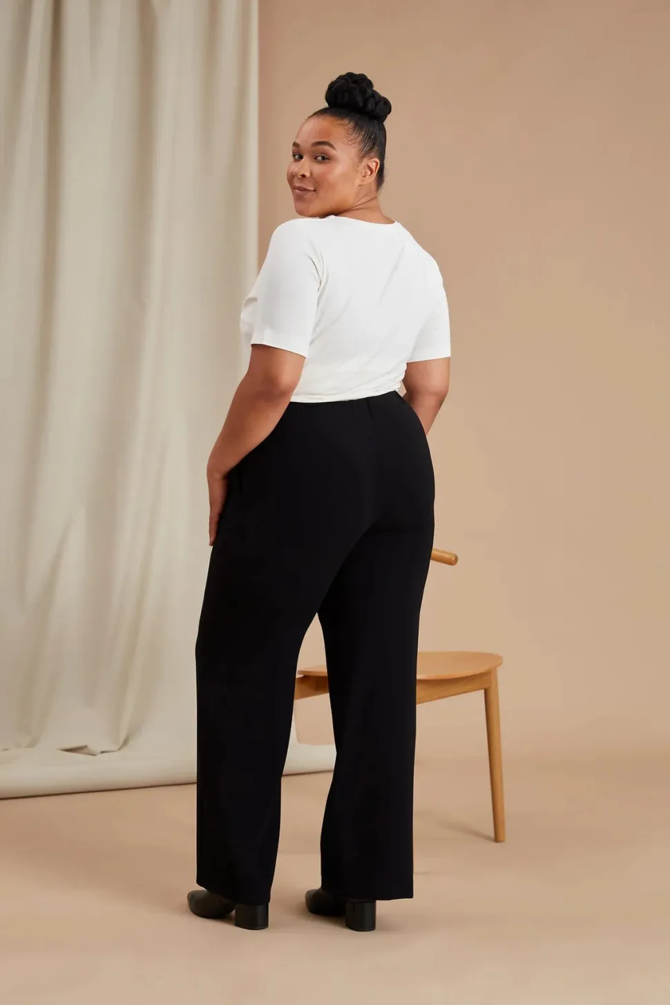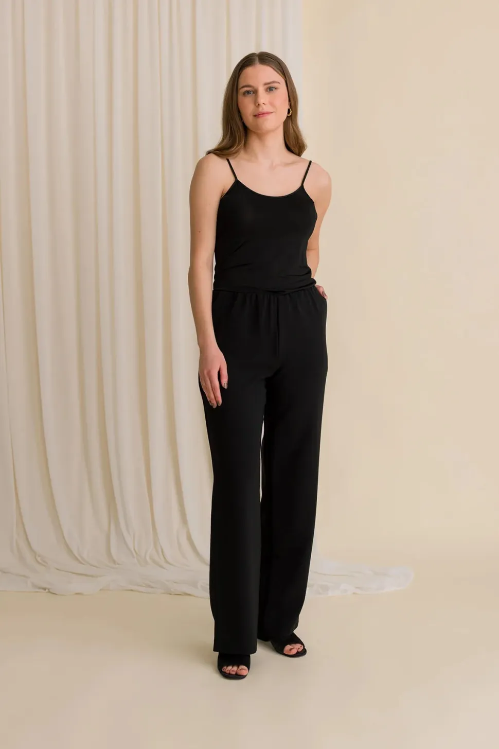 Tyylikkäät Keira-housut on valmistettu laadukkaasta triasetaatin ja kierrätyspolyesterin sekoitteesta; selluloosatriasetaatti tehdään puumassasta. Klassisissa housuissa on mukava kuminauhavyötärö. Materiaali laskeutuu kauniisti ja kestää hyvänä pitkään – kangas ei rypisty eikä nyppyynny, joten housujen huolto on vaivatonta. Keira-housut kuuluvat Staples-valikoimaamme, jonka tuotteet on suunniteltu ajattomiksi luottovaatteiksi kaikkiin vuodenaikoihin.