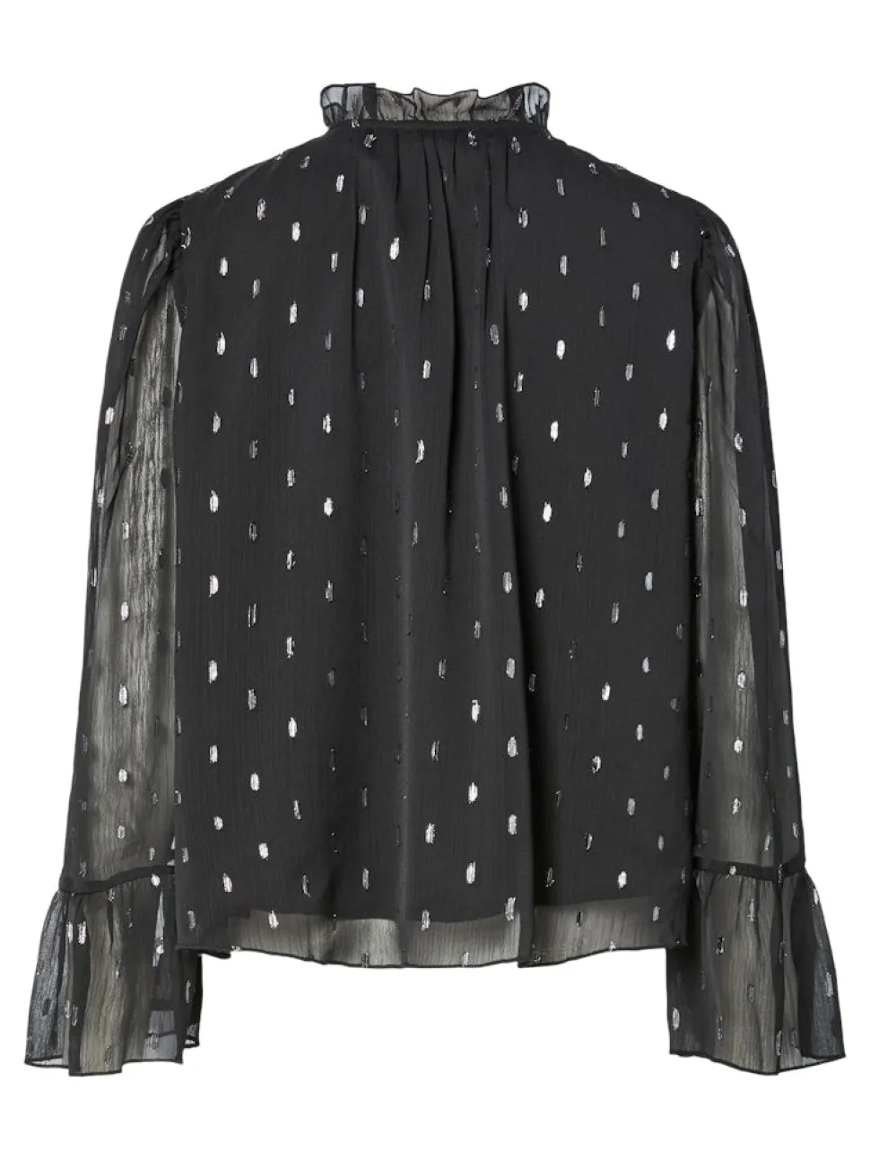Y.A.S Mena LS Top on tyylikäs pitkähihainen paita, joka on valmistettu kevyestä materiaalista. Siinä on korkea pääntie ja pitkät läpikuultavat hihat, jotka tuovat ilmettä ja keveyttä asuun. Paidassa on hillityt hopeiset pilkut. Täydellinen valinta näyttävään ja mukavaan pukeutumiseen.